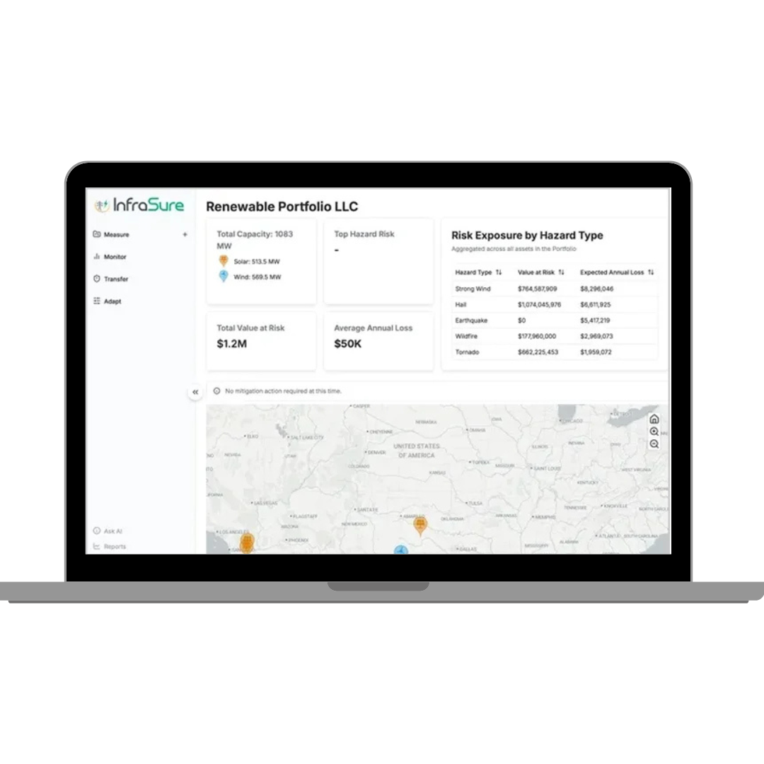 InfraSure delivers high-resolution climate risk insights to help investors, owners, and insurers make smarter infrastructure decisions. Our predictive models identify vulnerabilities, reduce exposure, and support resilient design. From risk assessment to insurance optimization, we provide the tools to protect assets, minimize losses, and plan for a sustainable future.